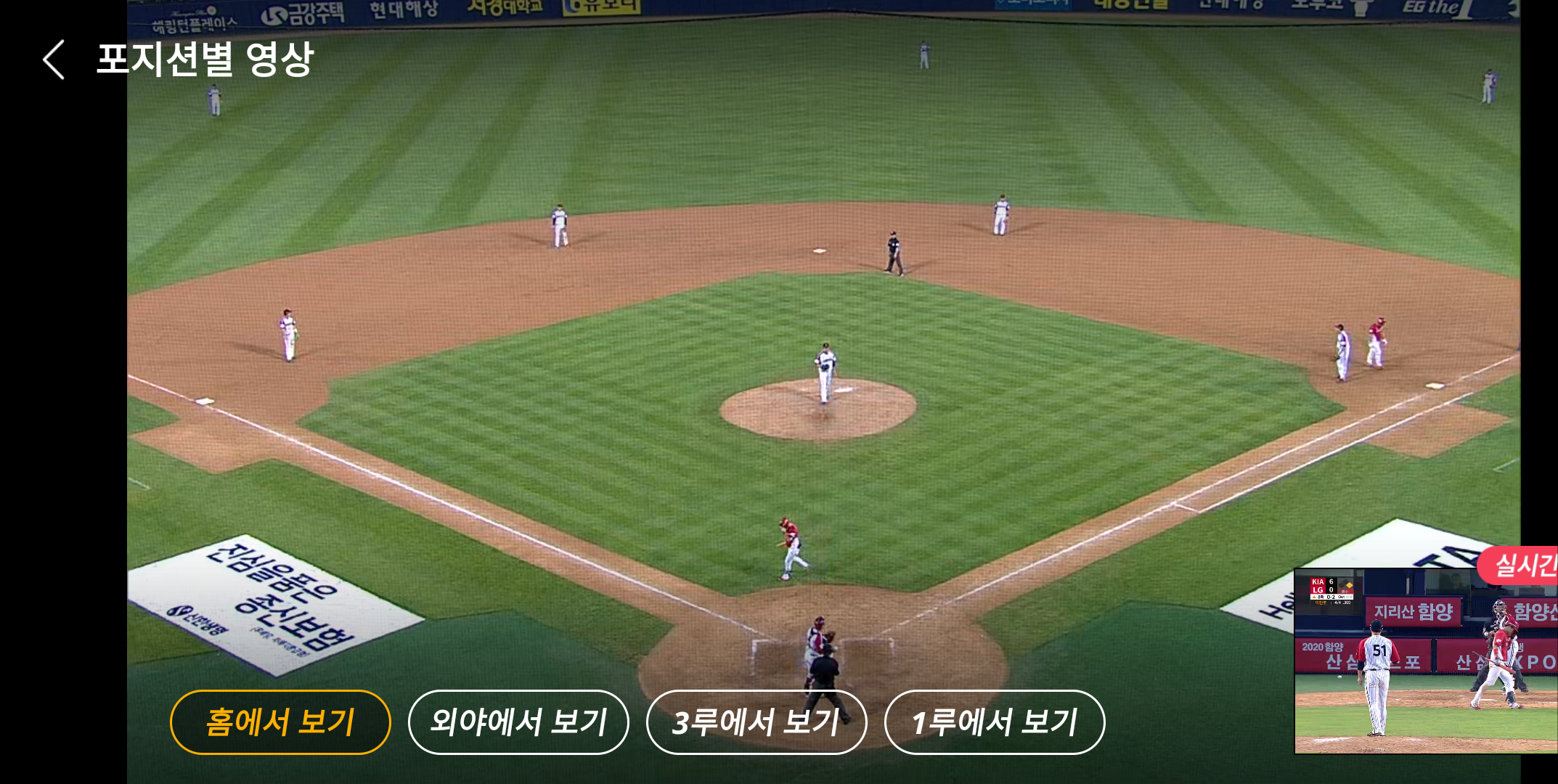 홈, 1루, 3루, 외야방면의 원하는 경기 상황을 골라보는 포지션별 영상