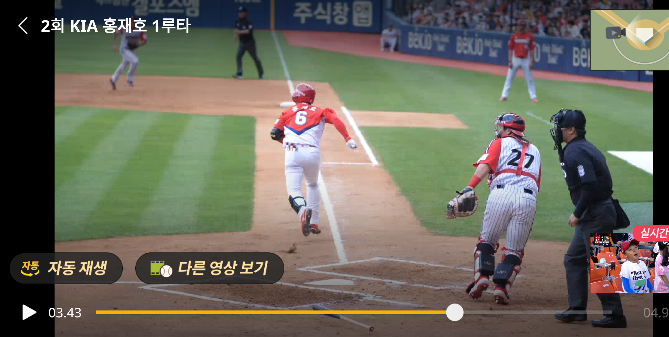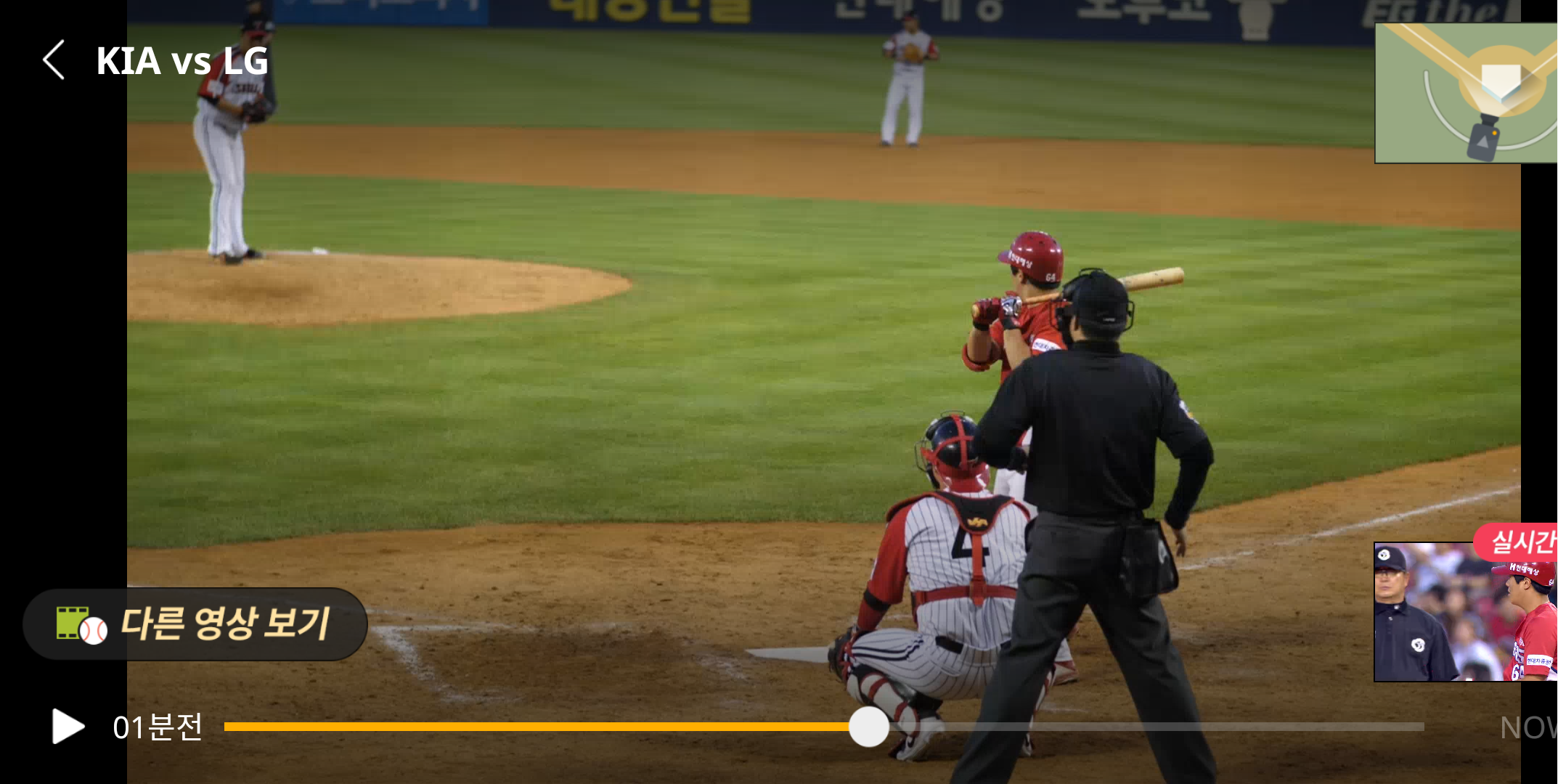 오랫만에 삼성이 이기고 있는 경기를 해서 계속보고 싶었지만 포스팅을 위해 눈물을 먹므고 5G입체 중계를 하는 기아와 엘지의 경기로 이동합니다.