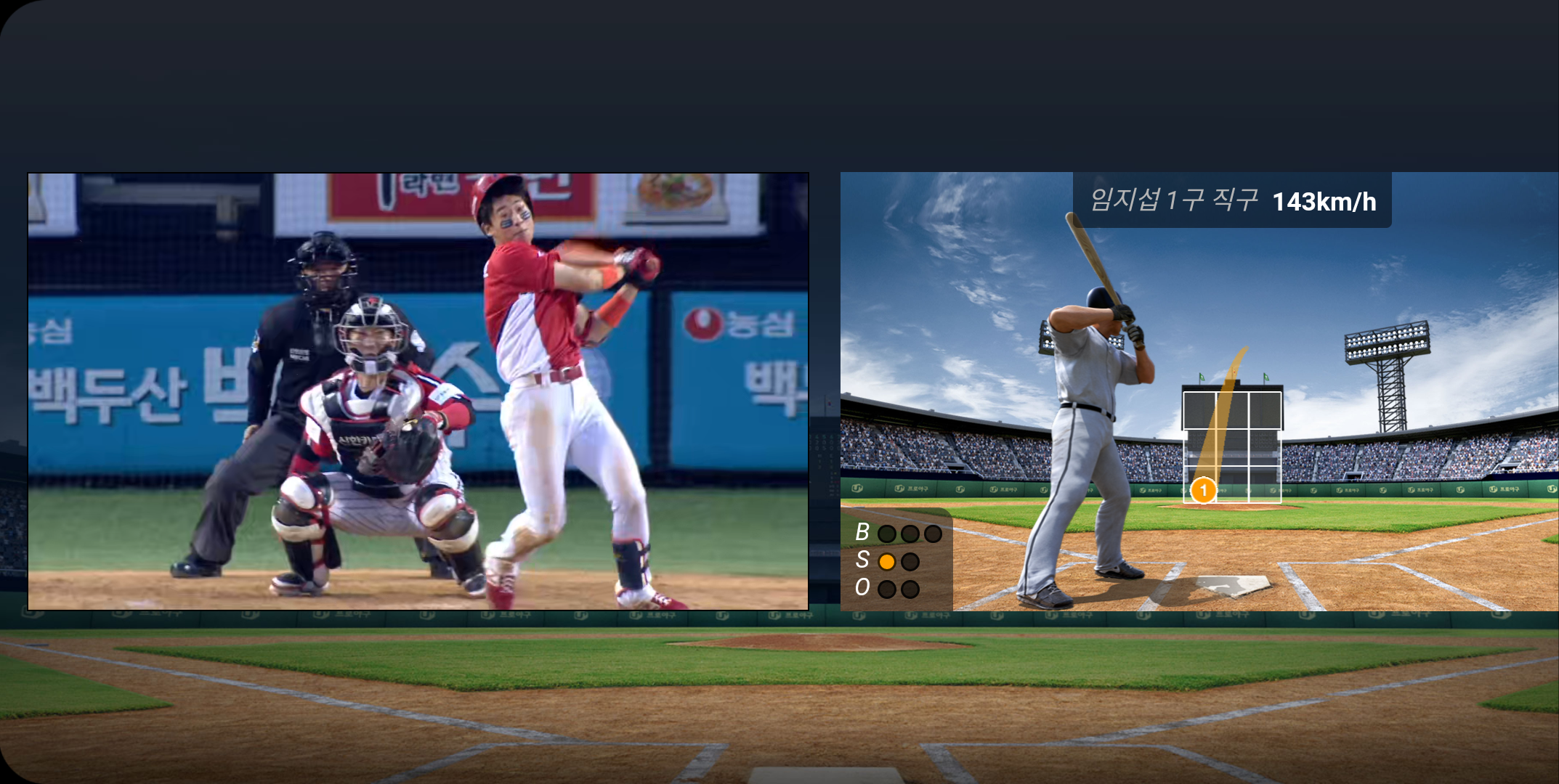 60대의 카메라로 촬영한 홈 영상을 영화 매트릭스의 장면처럼 원하는 속도로, 보고 싶은 각도로 돌려 볼 수 있습니다. 짜릿한 홈런 스윙은 물론 긴장되는 홈 접전 상황까지 홈 주변 상황을 더욱 생동감 있게 즐길 수 있습니다.