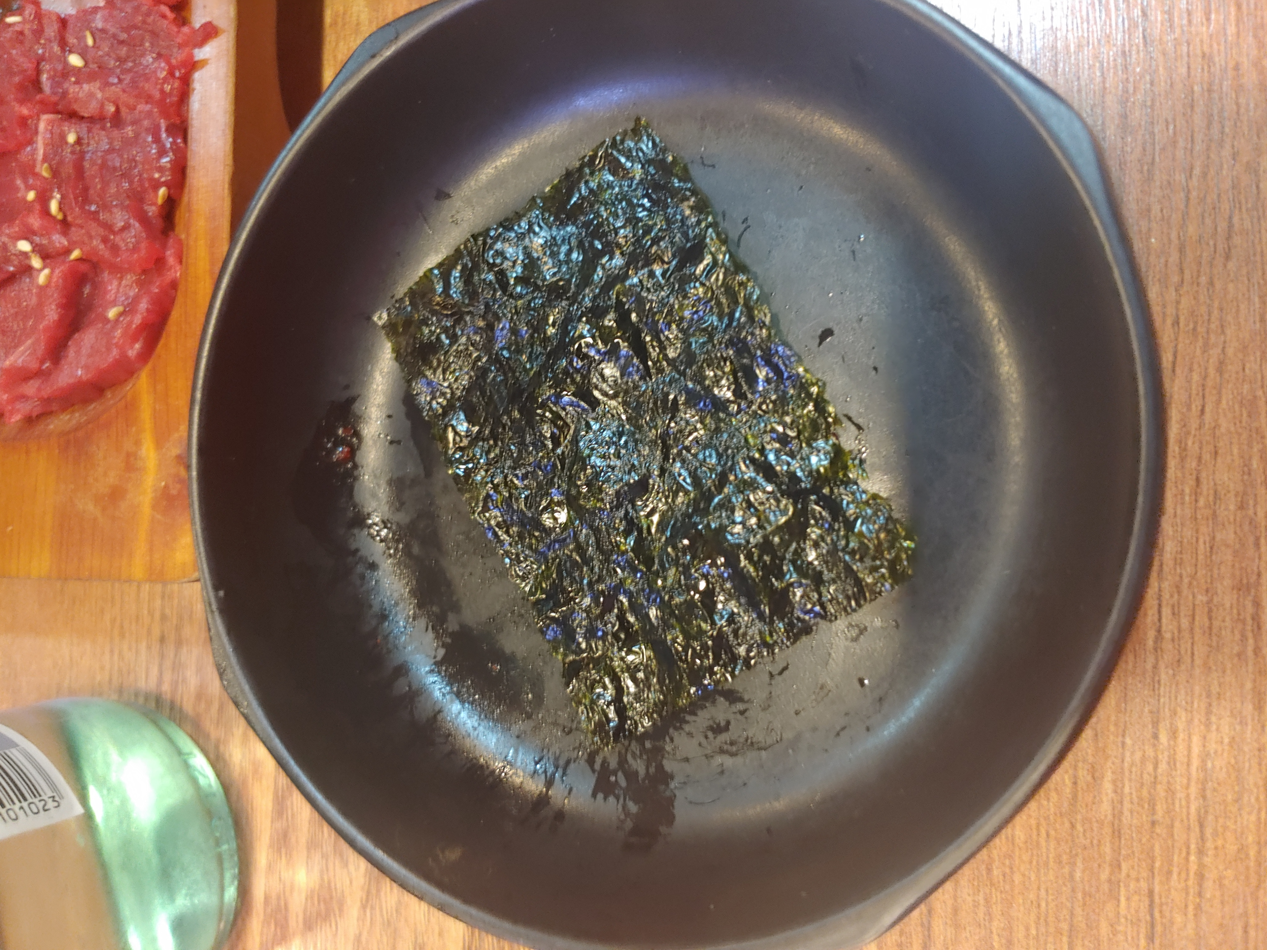 1. 김을 하나 판판하게 펴준다 (원래 펴져있음)