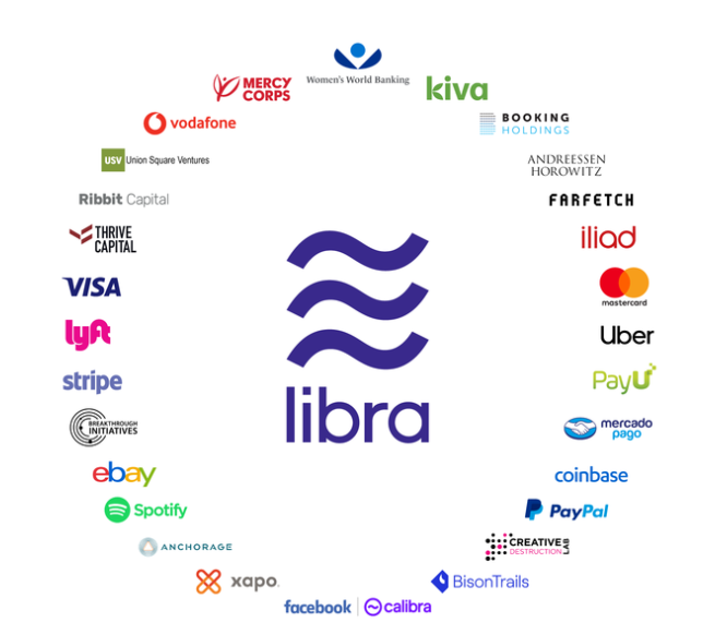 리브라 어소시에이션은 페이스북과 27개 파트너사로 구성됐다. 마스터카드, 비자, 이베이, 페이팔, 스포티파이, 우버, 리프트 등이 동참했다. 페이스북은 의사 결정 과정에 한 표 정도를 행사하는 것일 뿐, 전반적인 일은 리브라 어소시에이션이 담당한다.
