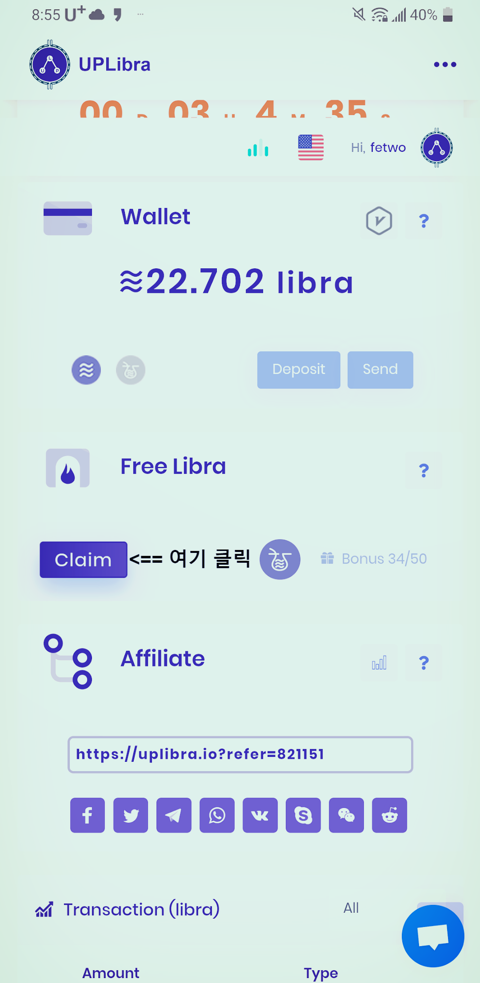 접속 페이지 클릭 ==> https://uplibra.io/?refer=821151