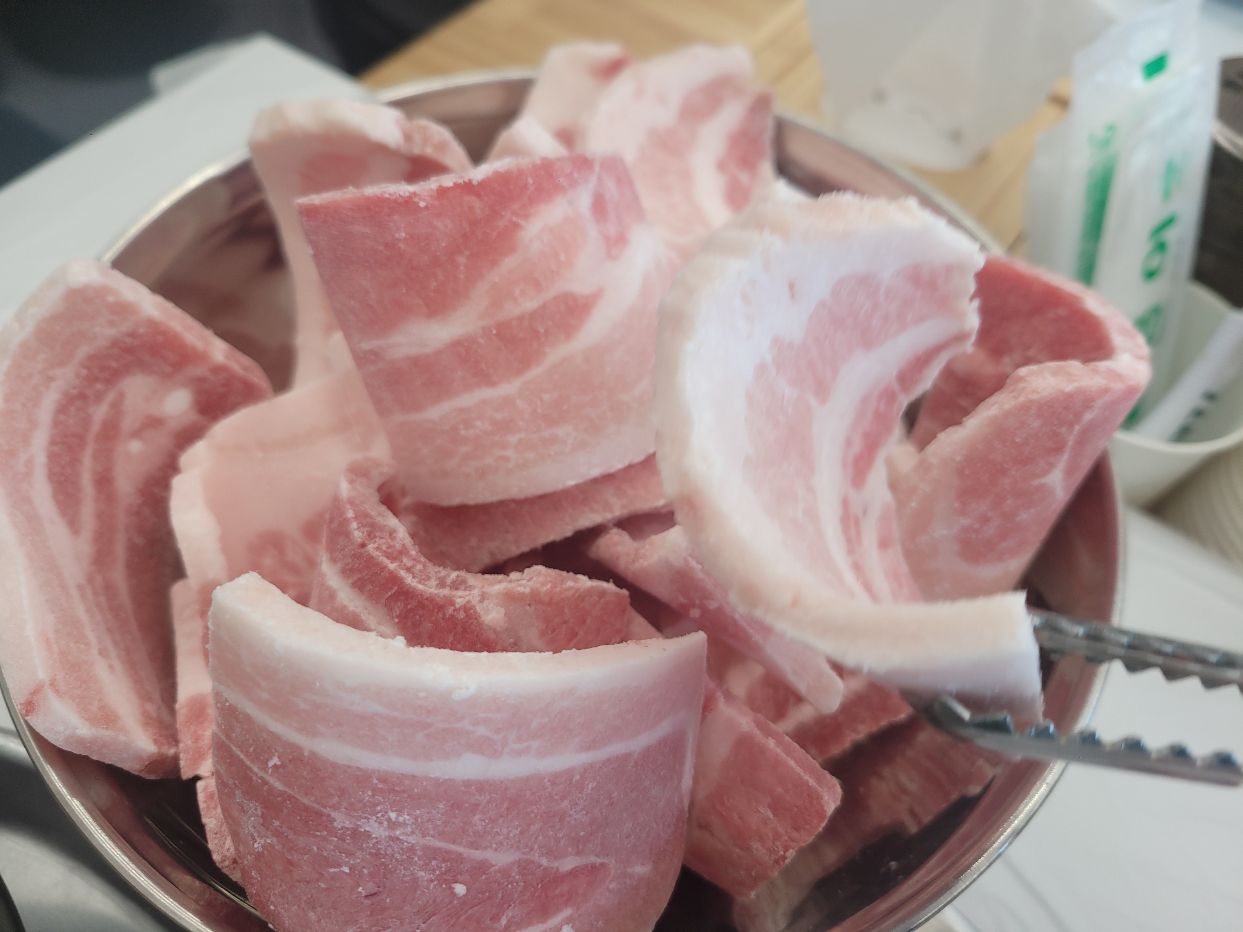 주문한 냉삼이 나오자마자 불판 위에 올려놓았습니다. 얇게 썰린 냉동 삼겹살이 지글지글 소리를 내며 익어가는 모습은 그야말로 예술이었습니다. 한 입 베어 물자, 바삭하면서도 촉촉한 식감이 입안을 가득 채웠습니다. 이 맛이 바로 양주 냉삼집의 진수구나 싶었습니다.