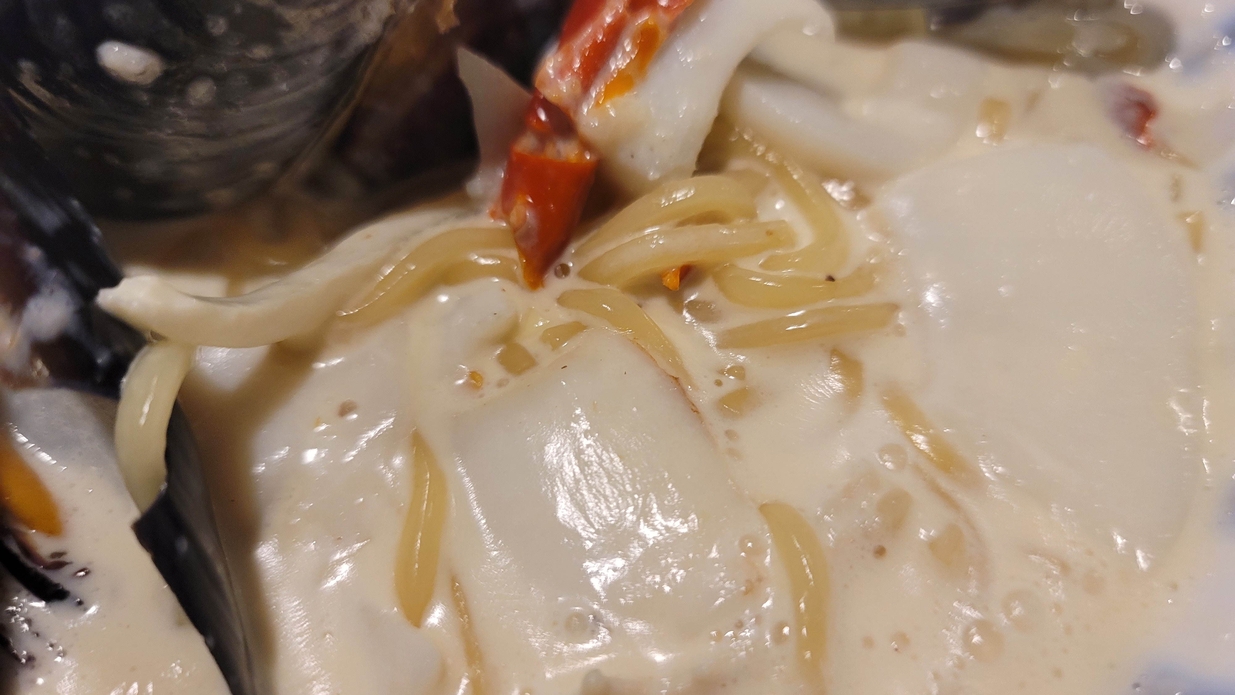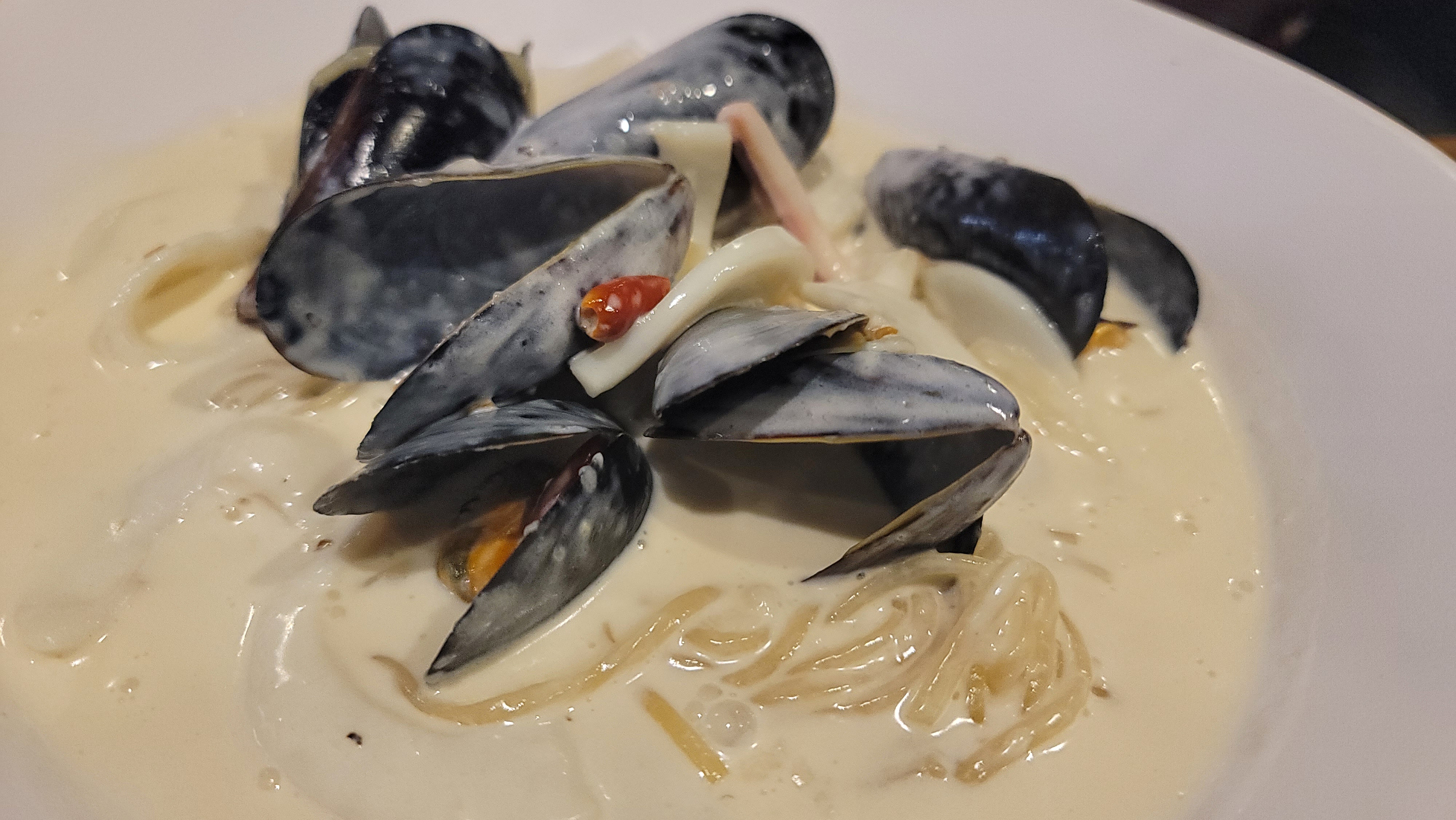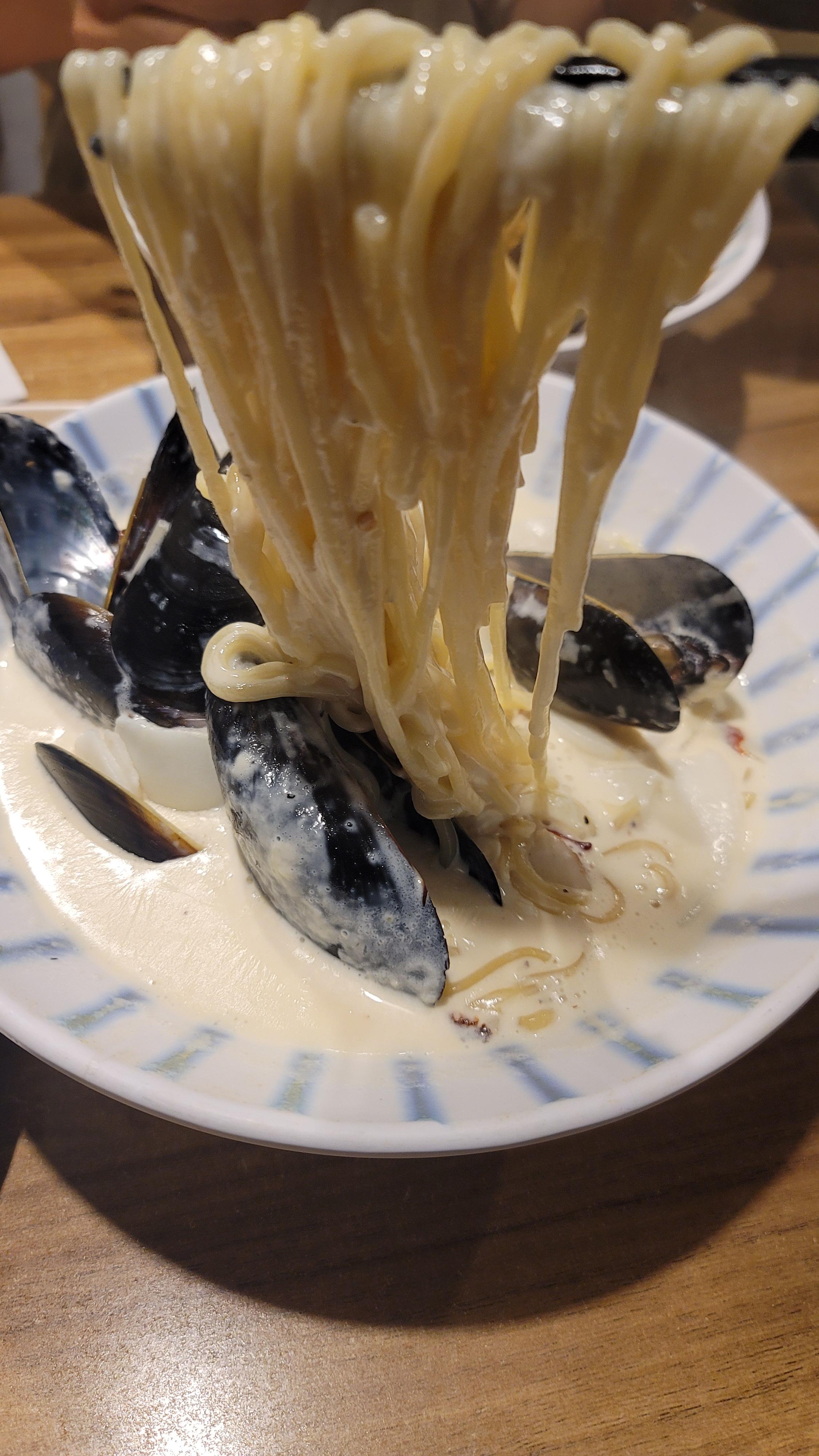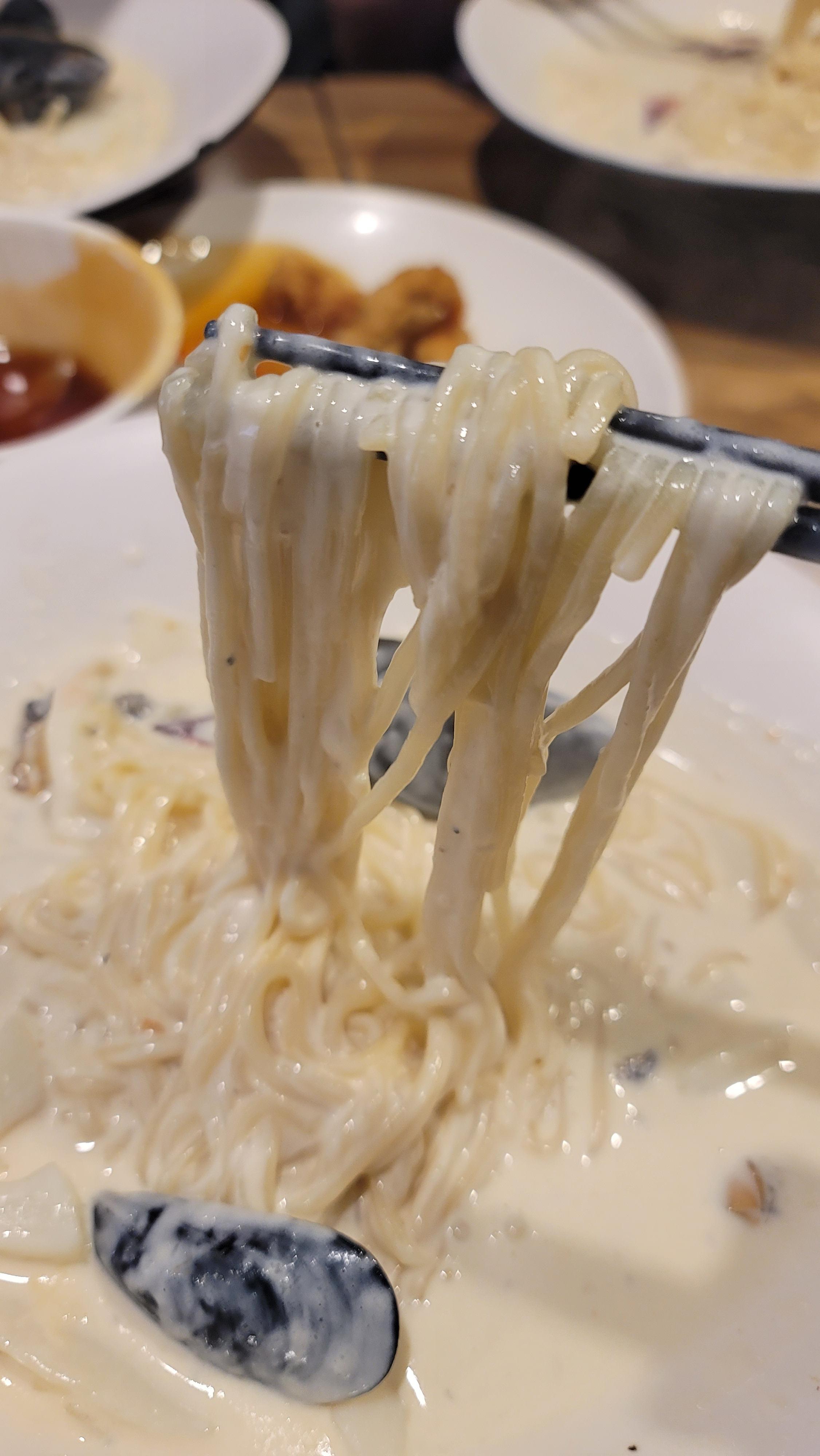 와~ 때깔보세요~ 호텔세프출신이 빚어놓은 흰색 해물크림짬뽕파스터라고나 할까요~