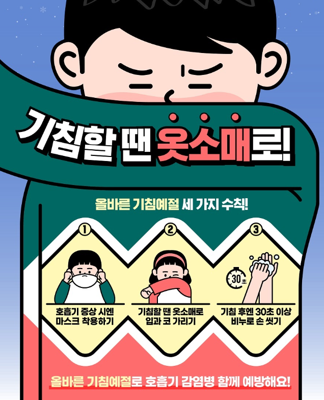 재채기 : 손수건이나 티슈로 코와 입을 막고 재채기를 하되 억지로 참지는 마세요. 주변에 비말이 튀지 않도록 매너를 지키는 방법이 가장 좋습니다.